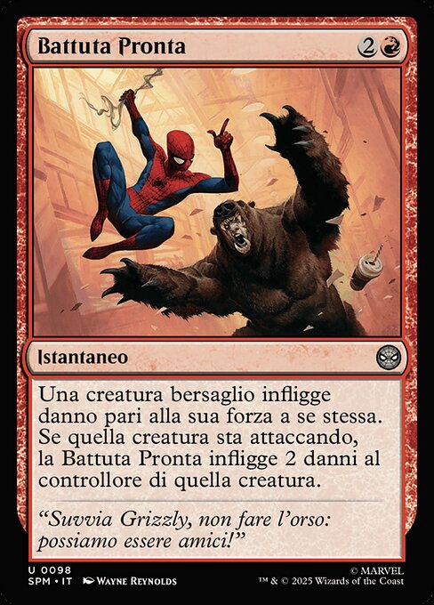 Target creature deals damage equal to its power to itself. If that creature is attacking, Wisecrack deals 2 damage to that creature's controller.