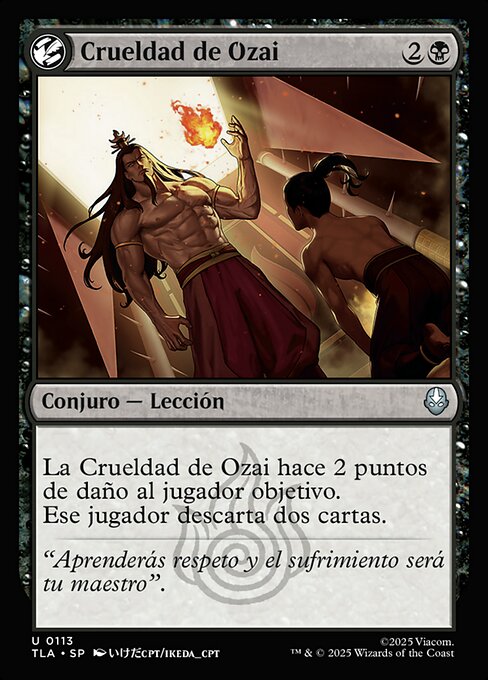 Ozai's Cruelty deals 2 damage to target player. That player discards two cards.