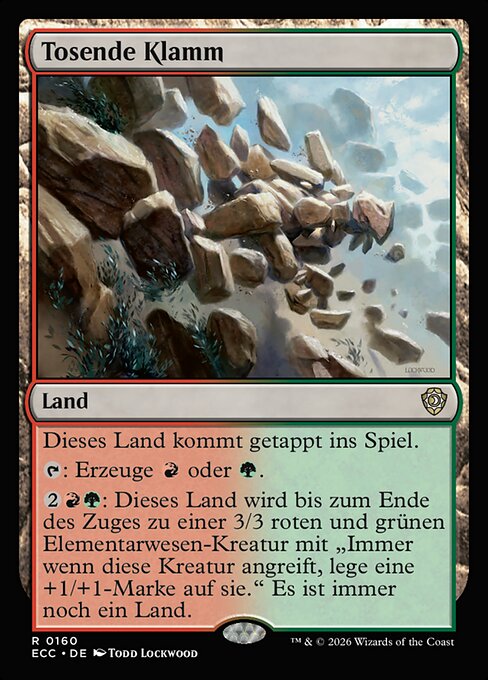 {2}{R}{G}: Until end of turn, this land becomes a 3/3 red and green Elemental creature with "Whenever this creature attacks, put a +1/+1 counter on it." It's still a land.