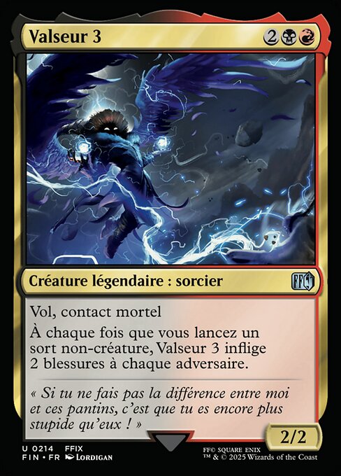 Whenever you cast a noncreature spell, Black Waltz No. 3 deals 2 damage to each opponent.