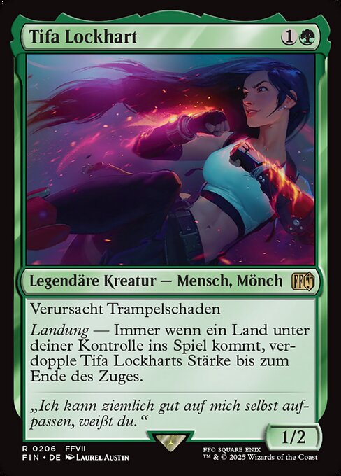 Landfall — Whenever a land you control enters, double Tifa Lockhart's power until end of turn.