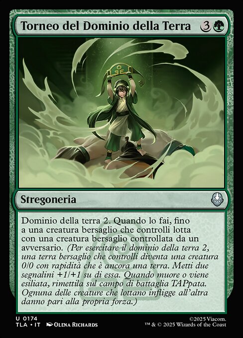 Earthbend 2. When you do, up to one target creature you control fights target creature an opponent controls. (To earthbend 2, target land you control becomes a 0/0 creature with haste that's still a land. Put two +1/+1 counters on it. When it dies or is exiled, return it to the battlefield tapped. Creatures that fight each deal damage equal to their power to the other.)