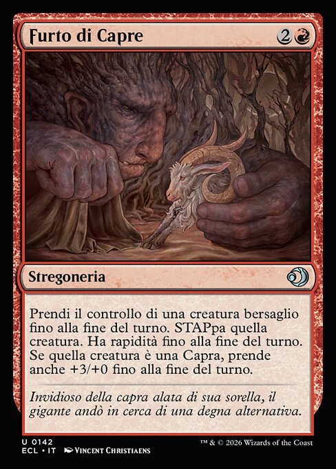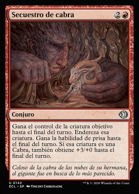 Gain control of target creature until end of turn. Untap that creature. It gains haste until end of turn. If that creature is a Goat, it also gets +3/+0 until end of turn.