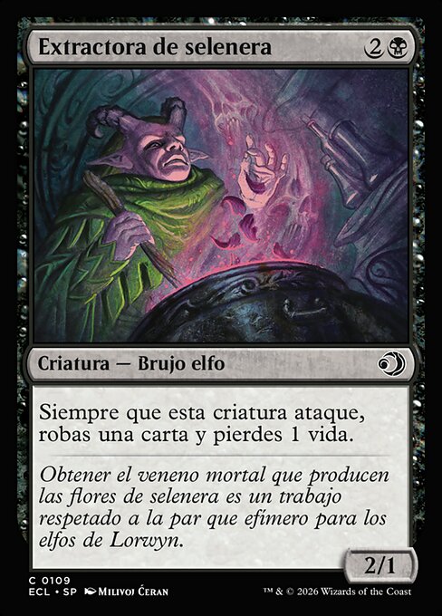Concentrating moonglove flowers into deadly moonglow poison is a revered but fleeting position for Lorwyn elves.