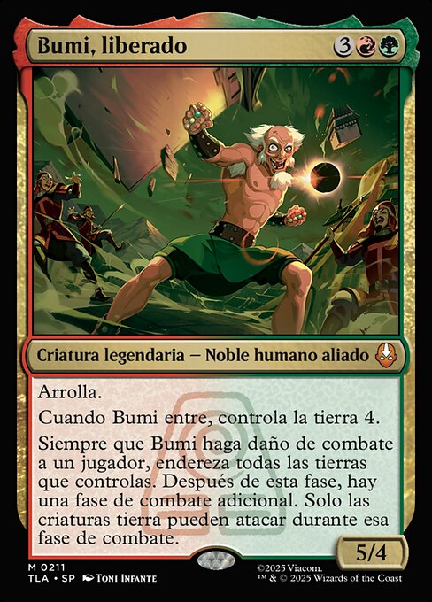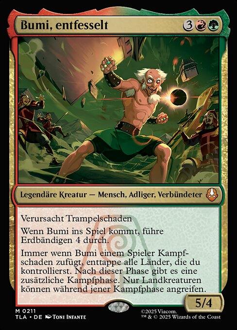 Whenever Bumi deals combat damage to a player, untap all lands you control. After this phase, there is an additional combat phase. Only land creatures can attack during that combat phase.