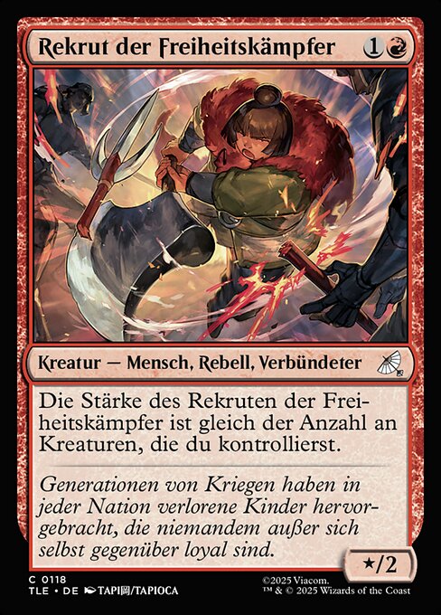 Freedom Fighter Recruit's power is equal to the number of creatures you control.
