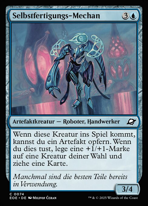 When this creature enters, you may sacrifice an artifact. When you do, put a +1/+1 counter on target creature and draw a card.
